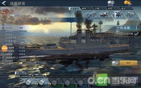 在游戏的主界面中有研发功能,点击进入以后可以看到所有的战舰列表,选择你要提升战斗力的战舰。