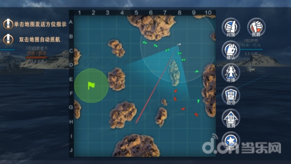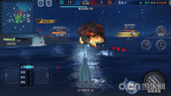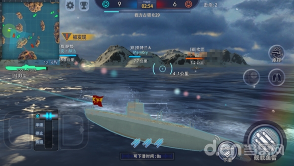 被驱逐舰发现了,不要慌,如果是在距离占旗点还有一段距离的时候,可以用下潜功能。但如果没有什么事,下潜时间还是尽量节省。现在的情况是隔着山,所以不要让“被发现”影响你的判断。选定了哪条路就走哪条路,潜艇的机动性差,最好不要随意改变路线。